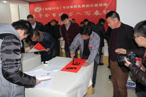 元月7日,由兴国县书法家协会与兴国县公路局联办的“祝福2016书法春联免费送公益活动‘兰亭会百城万人写春联’兴国站”在公路局大厅正式启动!主办方召集了我县书法界二十几名书坛精英参加了此次义务写春联活动,参写人数与受众人数都非常多,活动气氛高涨,本次活动取得圆满成功,并获得了社会各阶层人士的一致好评,也得到了各级领导及新闻媒体的支持。我馆有两名专干刘和生与凌胜斌老师积极参与了此次活动。