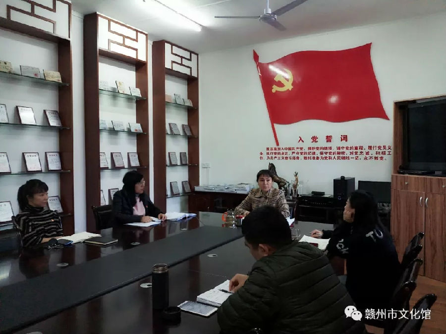 为深入贯彻落实习近平总书记对王继才同志先进事迹和中船重工第七六O研究所黄群等3名同志英雄事迹的重要指示精神。11月19日下午,赣州市文化馆党支部组织召开了支部党员大会,会上党支部书记李媛媛向全馆党员传达了习近平总书记的重要指示精神和中共中央关于追授黄群、宋月才、姜开斌、王继才同志“全国优秀共产党员”称号的决定,并组织大家分别学习了王继才和黄群、宋月才、姜开斌4位同志的先进事迹和英雄事迹。