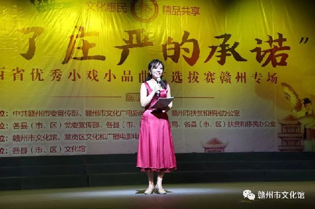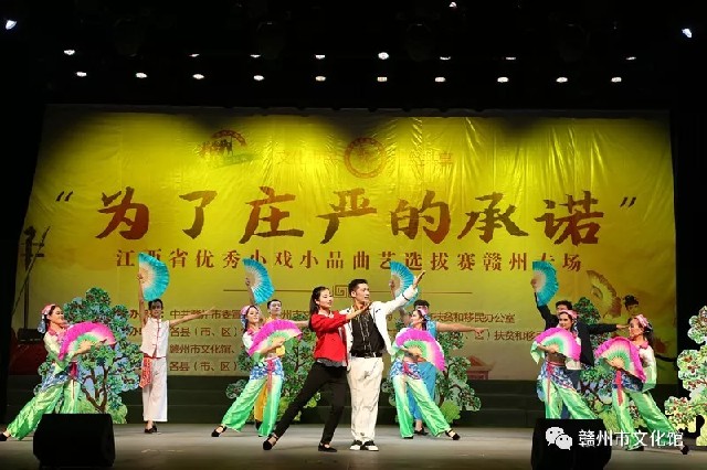 为筹备好“为了庄严的承诺”——江西省庆祝改革开放40周年脱贫攻坚小戏小品曲艺大赛,做好第十四届“华东六省一市”戏剧小品大赛江西省参赛推荐选拔工作,备战第十八届群星奖,我市在举办3场脱贫攻坚小戏小品曲艺大赛的基础上,精选出部分优秀作品节目,于8月28日在章贡艺术剧院专场举办江西省优秀小戏小品曲艺选拔赛。